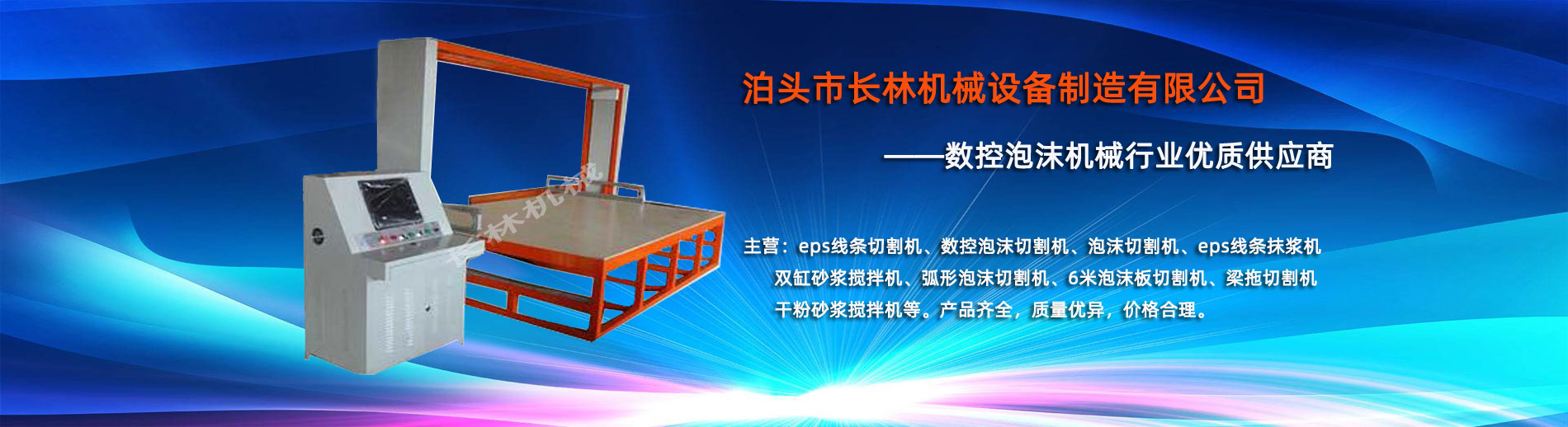 泊頭市長林機械設備制造有限公司座落于河北省泊頭市開發區,地處北京、天津、濟南、石家莊中心位置。京滬高速、京滬鐵路、106國道、104國道穿行于本市,交通便利。 本公司是集多功能數控泡沫切割機的自主研發、生產、銷售和服務于一體的企業,eps線條設備,數控泡沫切割機,發泡陶瓷切割機,eps線條切割機銷往全國各地,并開辟了國際合作的廣闊渠道。創新不斷的長林數控機械有限公司經過幾年的不斷研究,完善了建筑裝飾構件的配套設備和自動化設備,由過去手工生產到半自動生產發展到現在的CNC控制的全自動零誤差數控泡沫切割機床。不但讓客戶在交貨期上面爭取了時間而且···